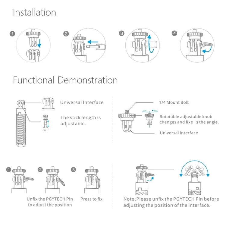 3. The top of the pole is equipped with a sports camera universal interface, and a 1/4 screw adapter is standard, which effectively expands the use of functions.
