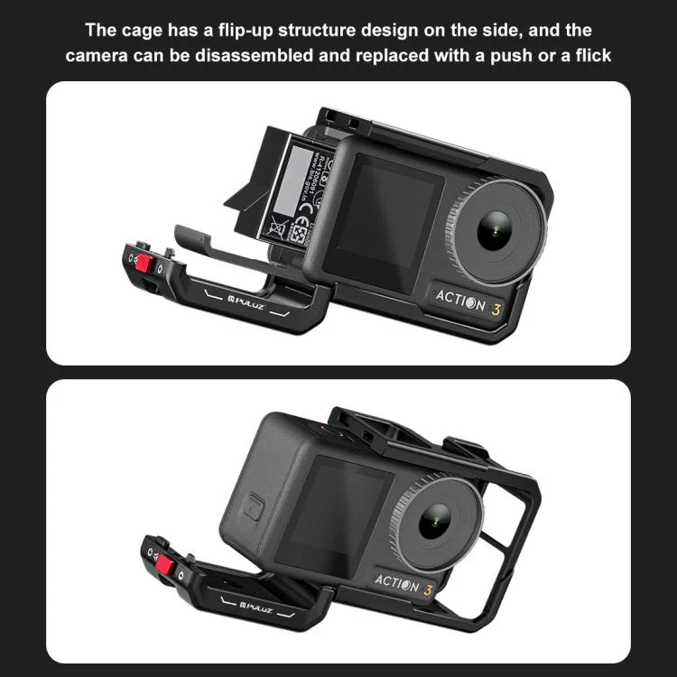 For DJI Osmo Action 5 Pro / 4 / 3 PULUZ All-inclusive Aluminum Alloy Cage Expansion Adapter Frame with Lens Cover