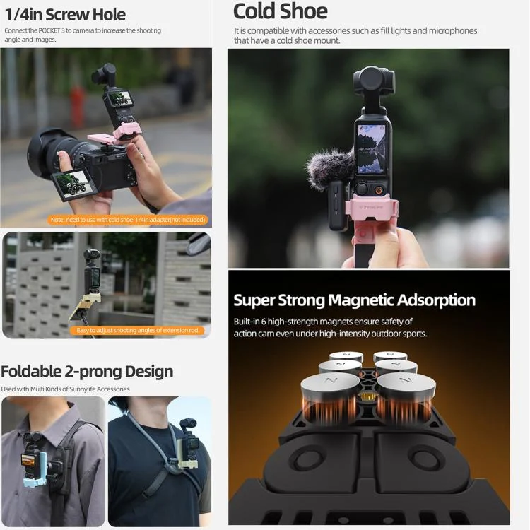 For DJI Osmo Pocket 3 Sunnylife Hand Band Magnetic Expansion Adapter Phone Teleprompter Holder Mount Extension Handle