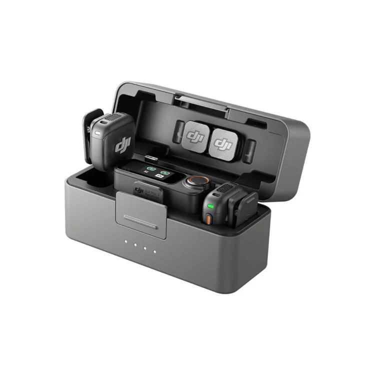 2. Lightweight and compact, DJI Mic 3 supports both magnetic and clip-on use for flexible wearing. The charging case keeps transmitters, receiver, and accessories together for easy carrying and instant setup.