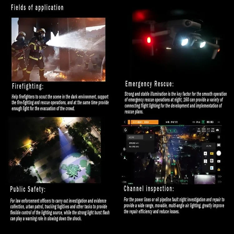 1. LP35 searchlight broadcasting all-in-one machine, rated power up to 90W, compatible with DJI M350RTK drone through OSDK interface.