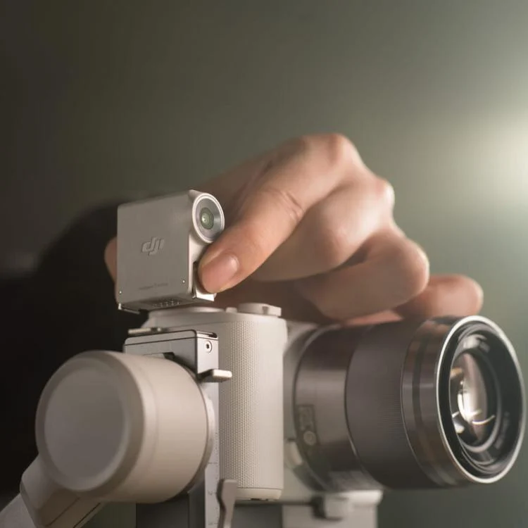 – The bottom of the intelligent tracking module features a magnetic quick-release design. Press the bottom clasp to directly magnetically attach it to the DJI RS 4 Mini