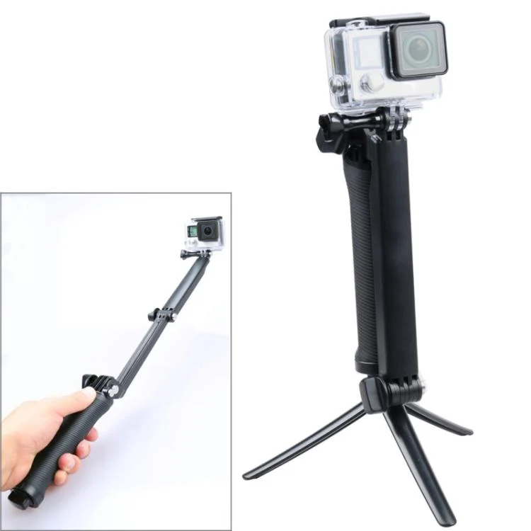 3-Way Multi Function Extendable Monopod Tripod Folding Rotating Arm Camera Handle for GoPro, Insta360, DJI and Other Action Cameras