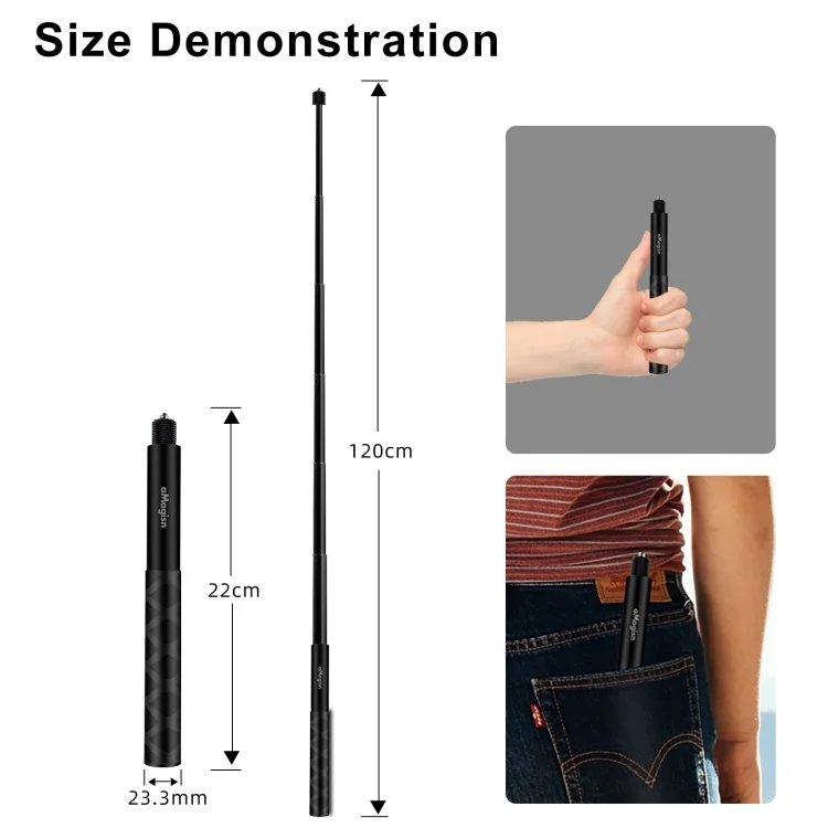 aMagisn 120cm Invisible Straight Pull Selfie Stick Sports Camera Accessories