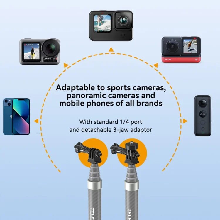TELESIN 1.2m Carbon Fiber Monopod Selfie Stick With 1/4 Screw For Action Cameras