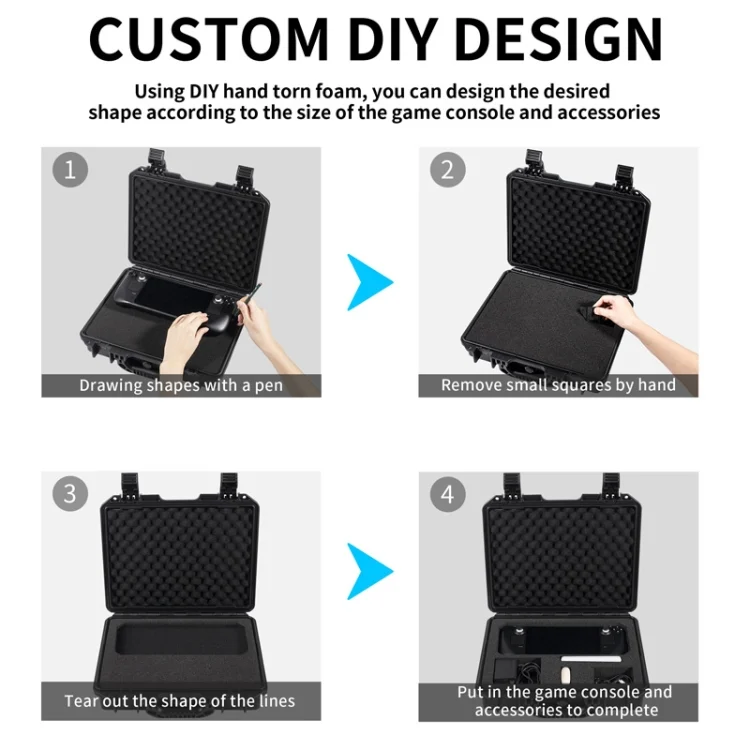 1. Customized DIY design, using hand torn foam, you can design the desired shape according to the size of the game handheld and accessories