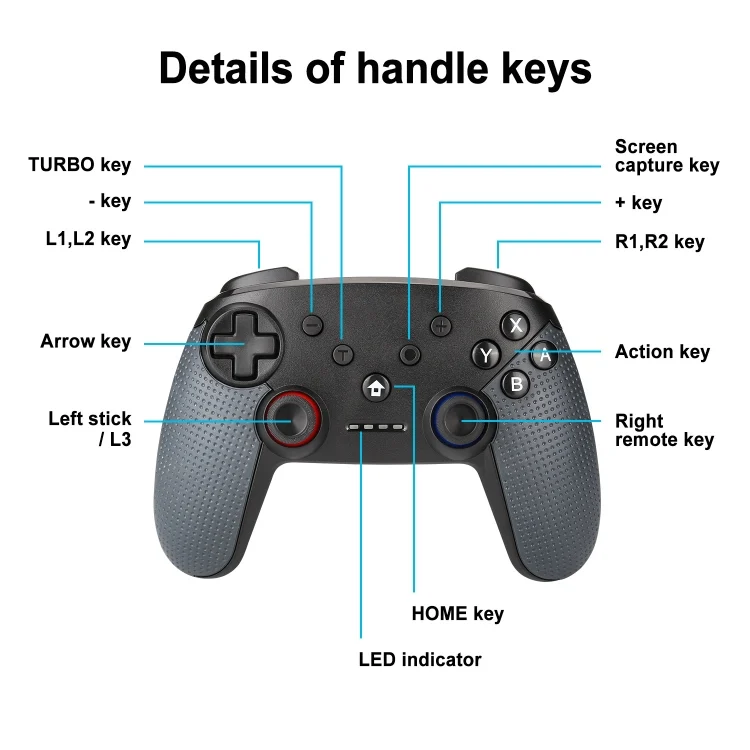 Bluetooth Wireless Gamepad Built-In Dual Motors With TURBO Function Suitable For Switch Pro, MB-S804