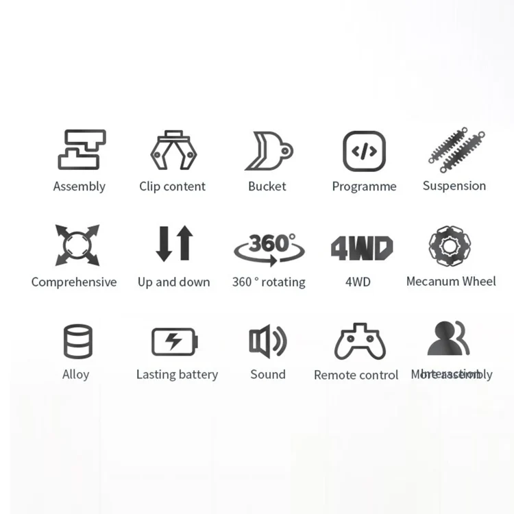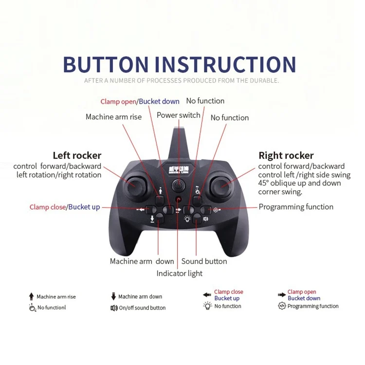 5. Four-wheel drive suspension, boom up/down, bucket function, programming function, analog sound effects