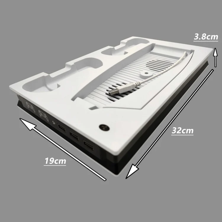 For PS5 Digital / Optical Drive Console Cooling Fan Controller Charging Base With Light Dock Stand, White, Black