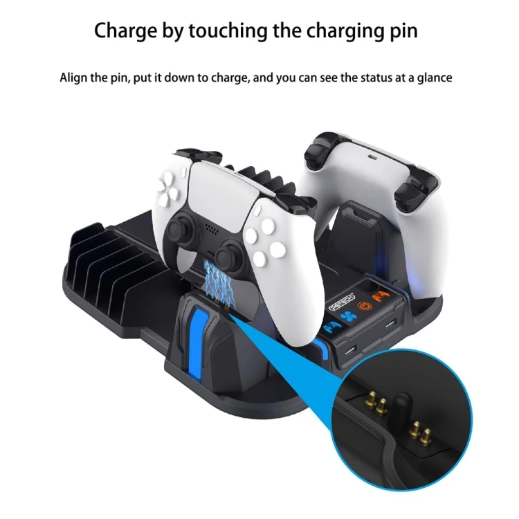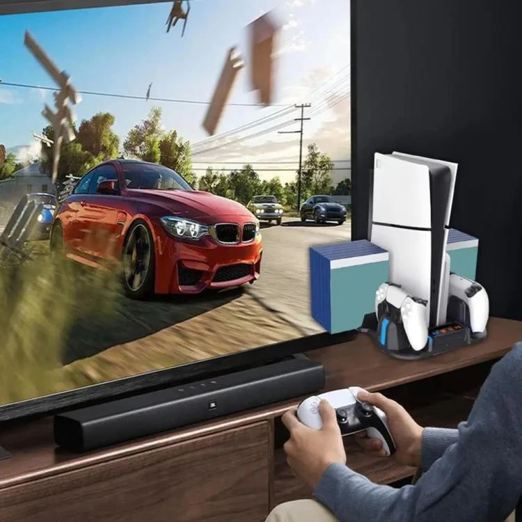 1. For PS5 Slim console (compatible with optical drive version/digital version), and can charge two original PS5 controllers at the same time.