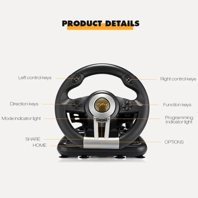 PXN-V3 Racing Game Steering Wheel for PC / PS3 / 4 / xbox one / switch, For PC / PS3 / 4 / xbox one / switch