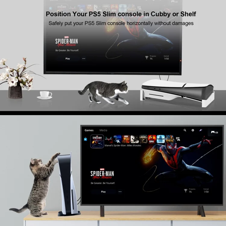 For PS5 Slim JYS-P5189 Console Horizontal Placement Stand Digital / Optical Drive Version Universal Storage Mount, Black, White, Transparent