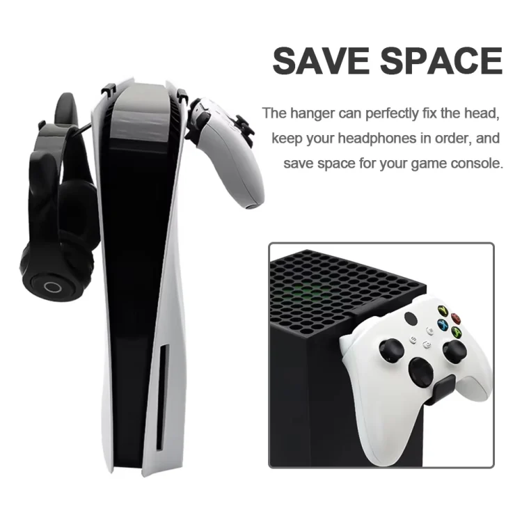 1. This headset hanger can be mounted on the game console, suitable for the XBOX Series X / PS5 game console.