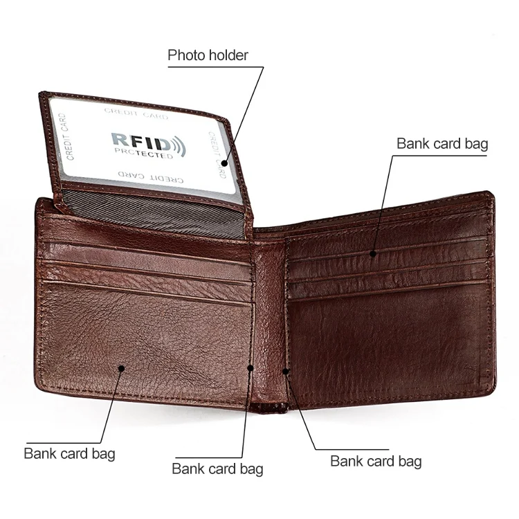 8018 Antimagnetic RFID Retro Fashion Crazy Horse Texture Leather Wallet for Men and Women