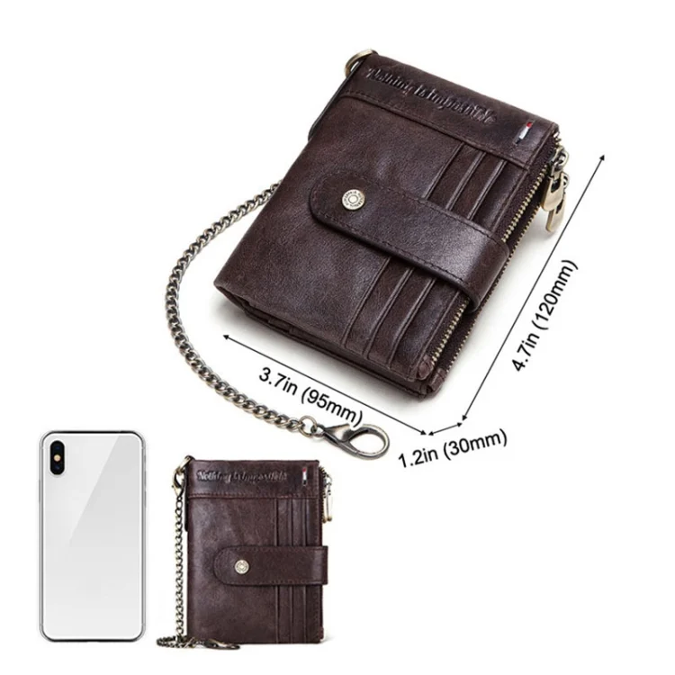 HUMERPAUL BP896 RFID Anti-Theft Brush Dual Zipper Leather Wallet Multi-Card Men Purse