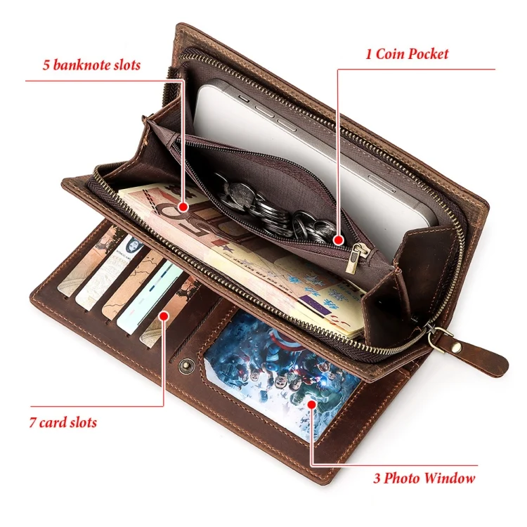 HUMERPAUL RFID Large Capacity Leather Wallet Long Men Pump Mobile Phone