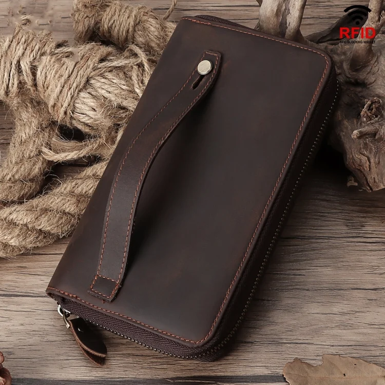 HUMERPAUL RFID Retro Zipper Multi -Card Leather Men Long Wallet Handbag