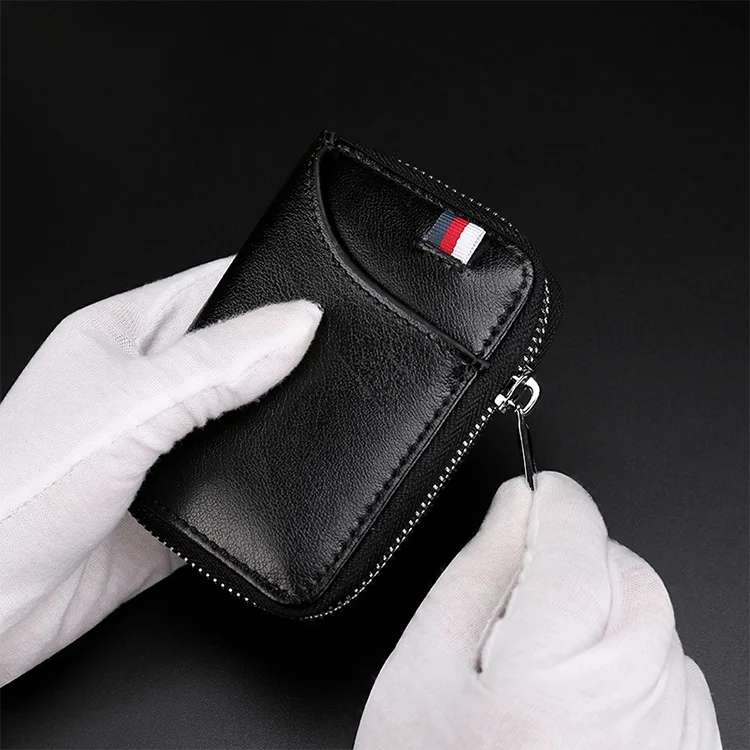 KB155 Antimagnetic RFID Zipper Leather Large-capacity Cards Holder Wallet