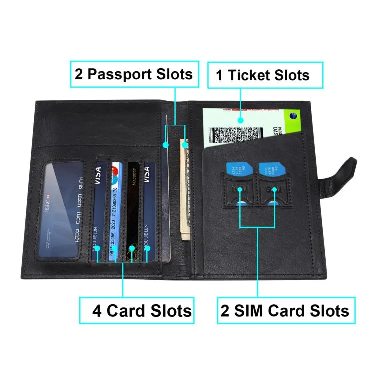 2. Smart Storage: Built-in four card slots, two passport slots, one ticket slot and two SIM card slots, can be used to store passports, credit cards, boarding passes.