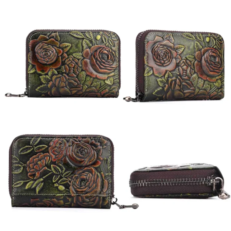 Zip Multi-card Hand-painted Organ Leather Card Holder