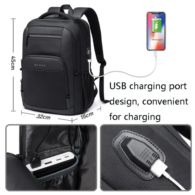 BANGE BG-1921 College Student Schoolbag Waterproof Business Computer Backpack with External USB Charging Port