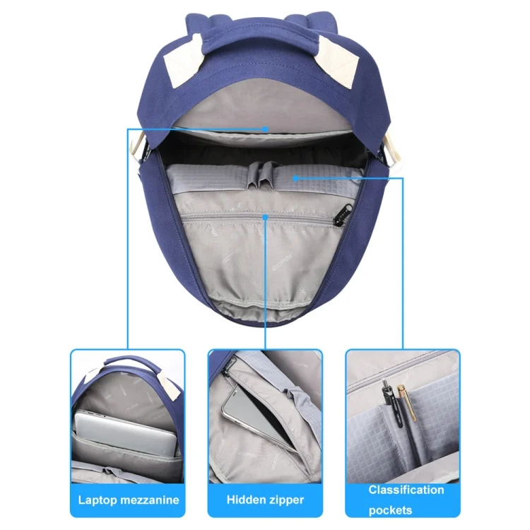 Bopai 68-01729 Large Capacity Canvas Lightweight and Breathable Student Schoolbag