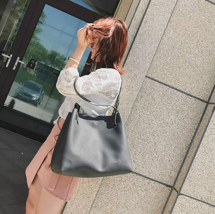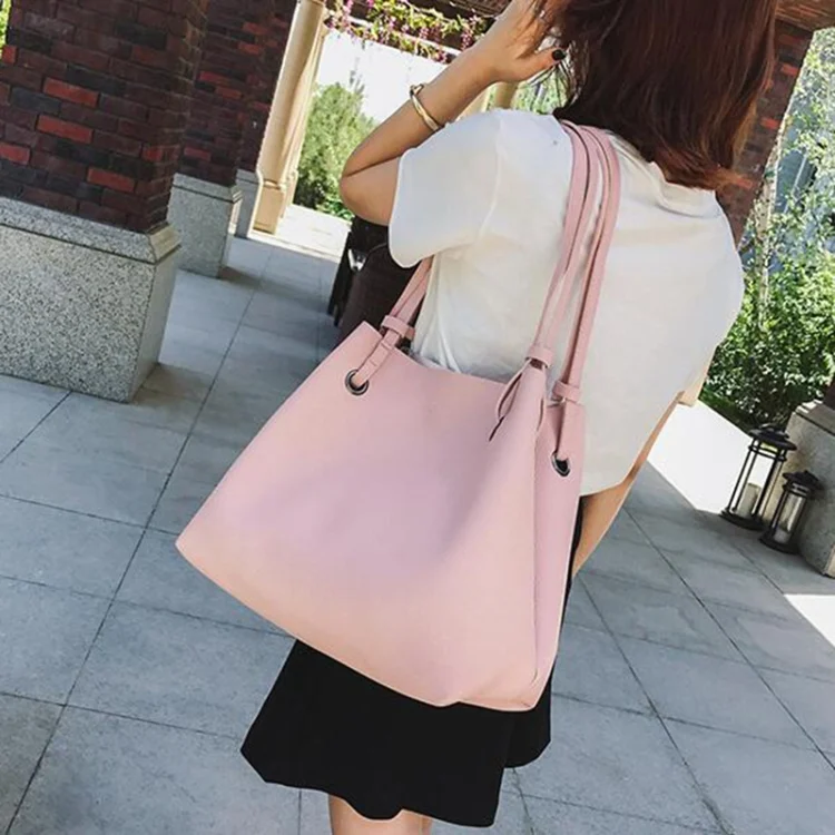 2 in 1 Soft Leather Women Bag Set Luxury Fashion Design Shoulder Bags Big Casual Bags Handbag