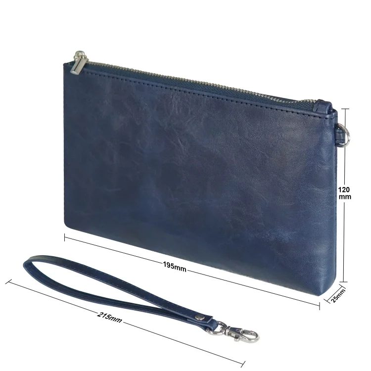 6 inch Simple Retro Leather Clutch Zipper Bag