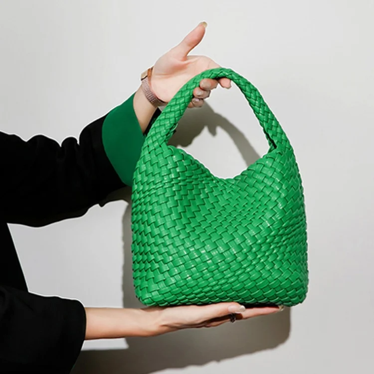 B988 PU Leather Hand-woven Handbag 2 in 1 Single-shoulder Messenger Bag