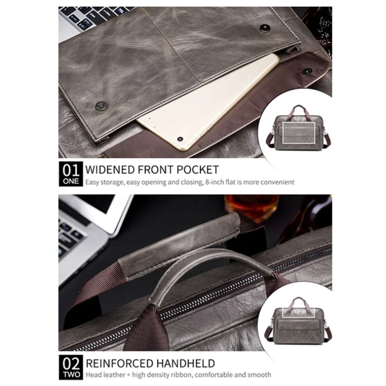BUFF CAPTAIN 044 14 Inch Portable Computer Briefcase Men Leather Shoulder Messenger Bag
