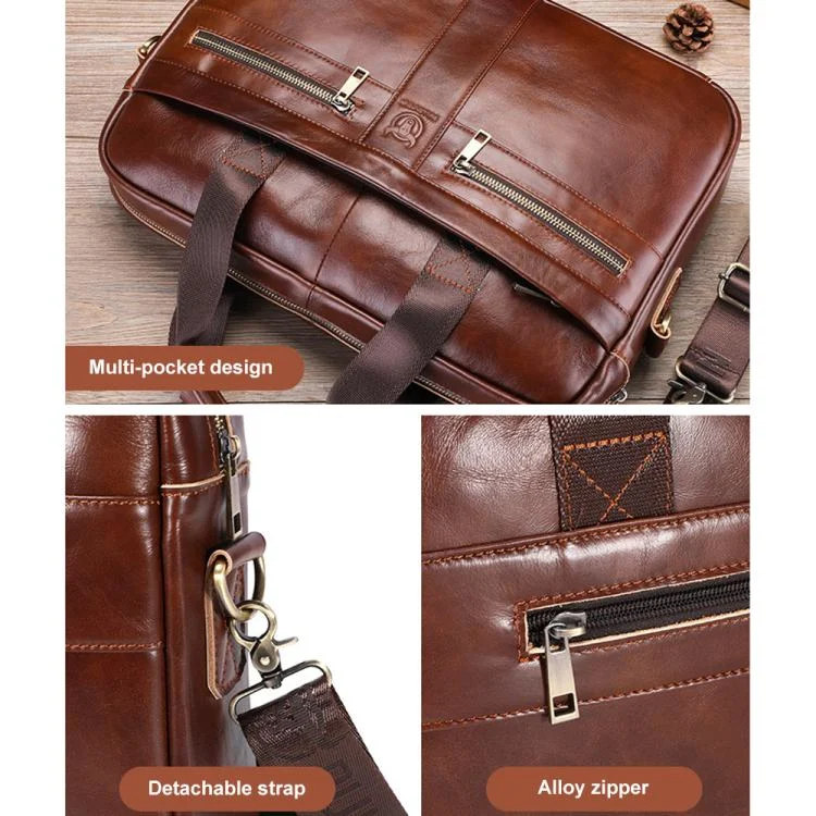 BULL CAPTAIN 054 Large Capacity Retro Business Top Layer Cowhide Hand-held Briefcase