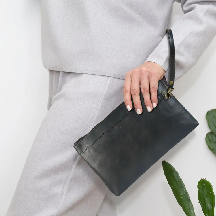 Simple Retro Leather Clutch Zipper Envelope Bag