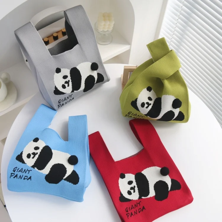 Spring and Summer Giant Panda Knitted Bag Large Capacity Cartoon Vest Style Handbag