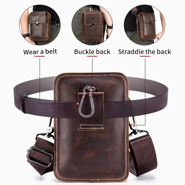 BUFF CAPTAIN 075 Men Belt Mobile Phone Waist Bag First-Layer Cowhide Multi-Function Diagonal Bag