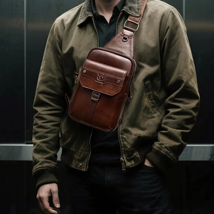 BULL CAPTAIN Men Vintage Genuine Leather Shoulder Bag