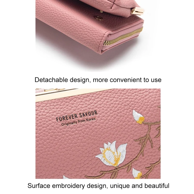 Embroidered Large Capacity Single-shoulder Phone Bag Crossbody Zipper Long Ladies Wallet
