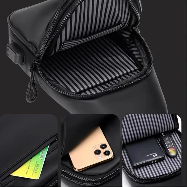 Men Anti-theft Chest Bag Water-Resistant Outdoor Sling Backpack with USB Charging Port