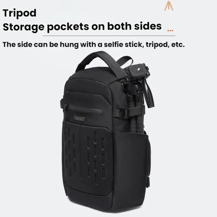 5. Compartmental design offers multi-level storage space, with side mounts for selfie sticks, tripods, and more