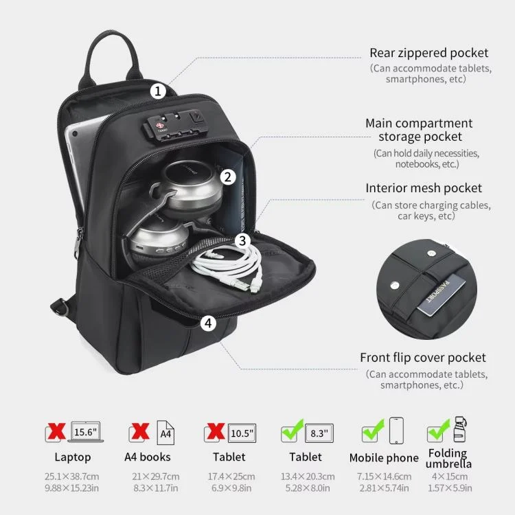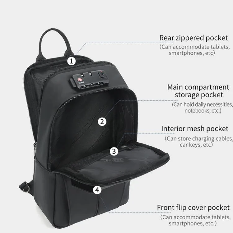1. A versatile crossbody sling bag designed for urban commuters, travelers, and daily adventurers. Combining security, durability, and modern style, this bag features an anti-theft TSA007 lock, a patented suspension zipper, and lightweight bionic tech fabric for hassle-free organization and all-day comfort.