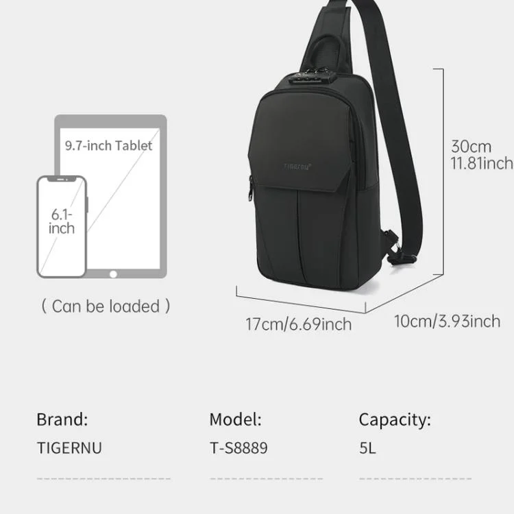 Tigernu Men Large Capacity Chest Bag Anti-Theft Crossbody Shoulder Bag with TSA007 Approved Lock