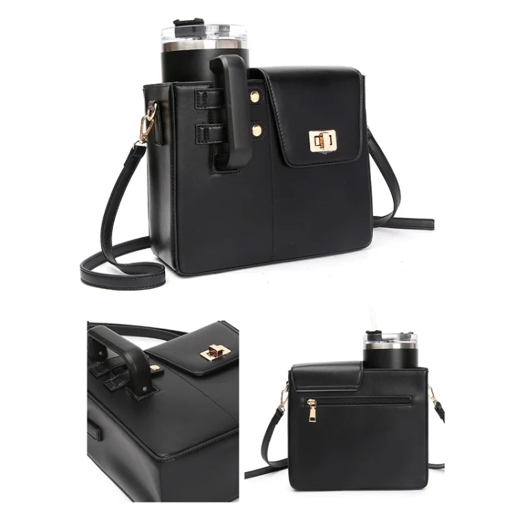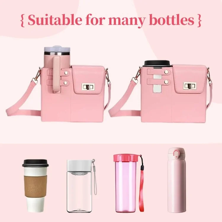 Women PU Leather Shoulder Bag Beverage Bottle Water Cup Bag For Stanley / Owala / Gatorade / Hydro Flask and Most Other Bottles