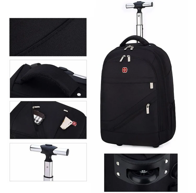 18 inch Pull Rod Double Shoulders School Bag Book Backpack Business Travel Box Bag