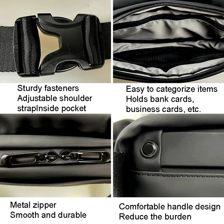 4. Sturdy fasteners, adjustable shoulder strap