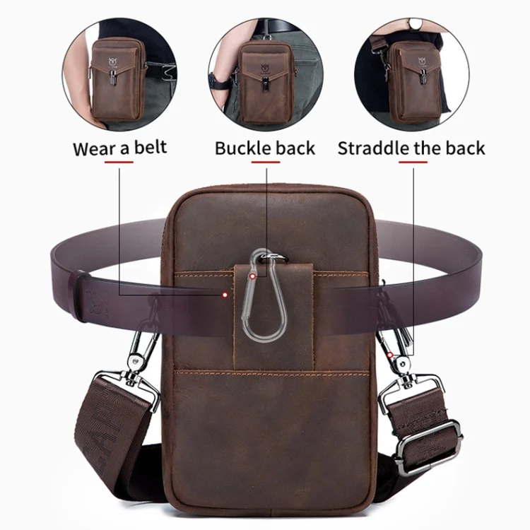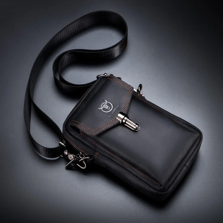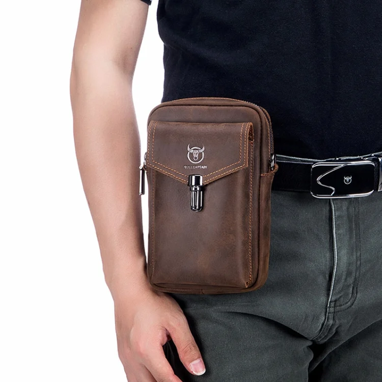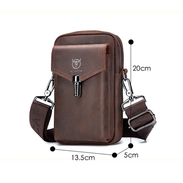 BULL CAPTAIN 076 Retro Leather Mobile Phone Waist Bag Men Leather Messenger Bag