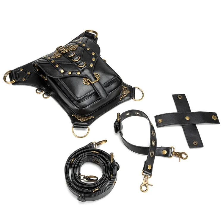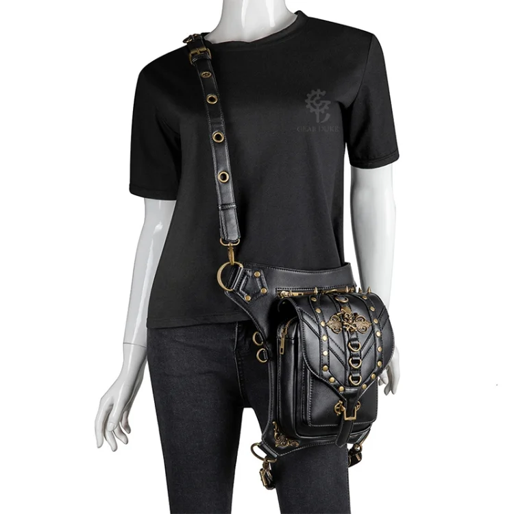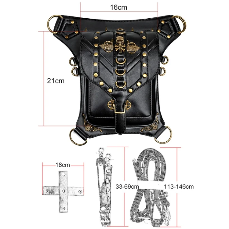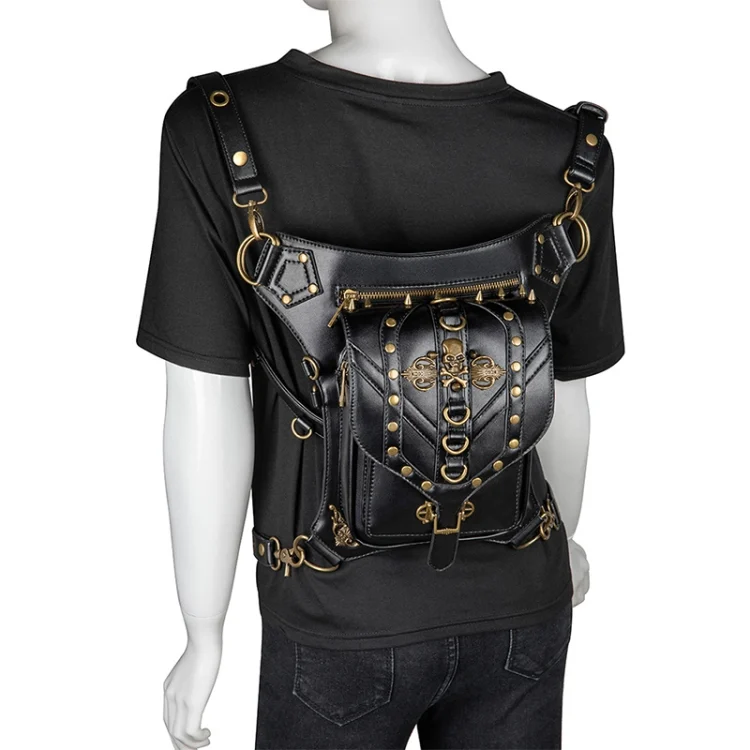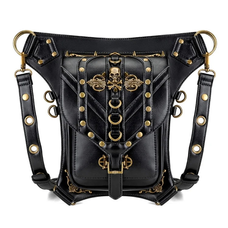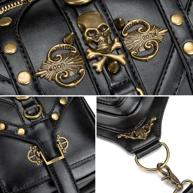 FHG131BK Skull Head Decoration Multi-function PU Leather One-shoulder Crossbody Bag Waist Bag for Ladies