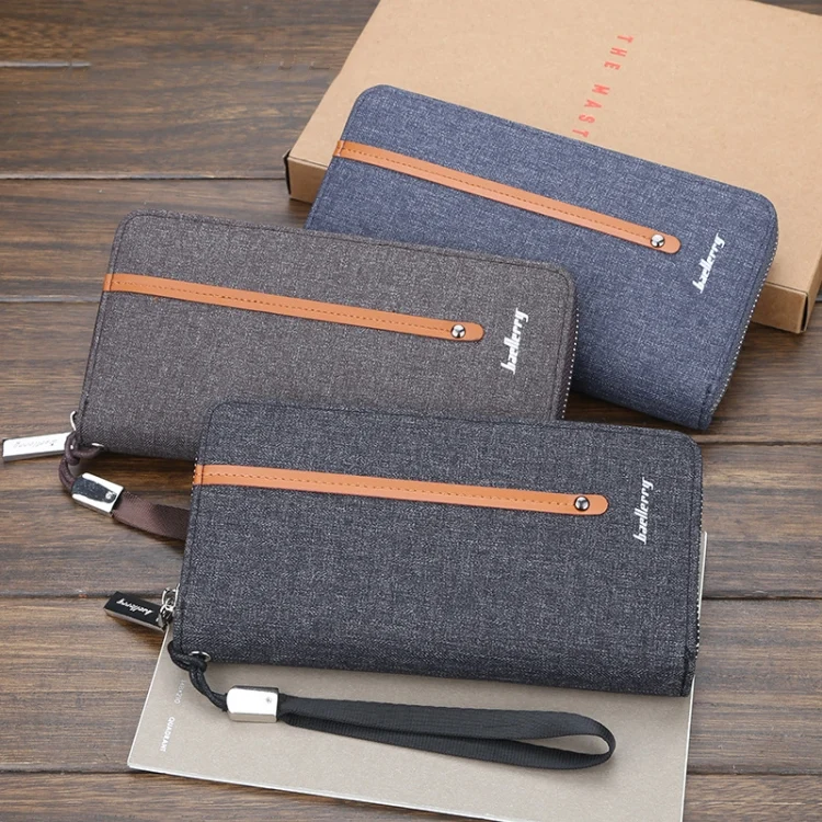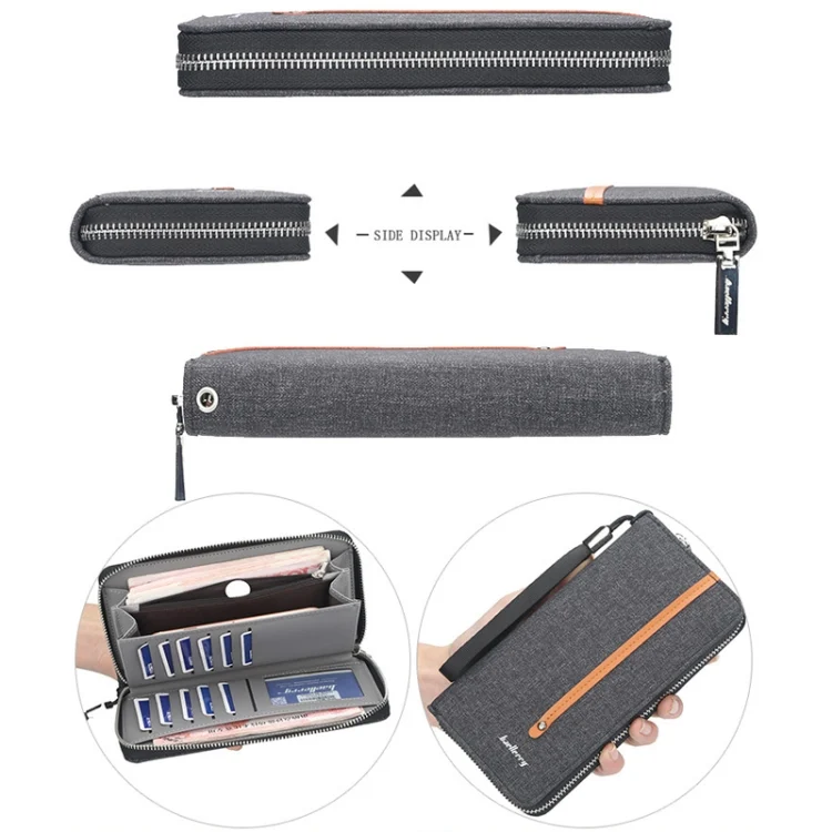 Baellerry Canvas Wallet Long Zipper Wallet Vintage Casual Multi-Card Clutch For Men