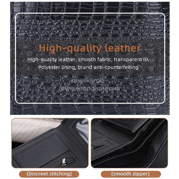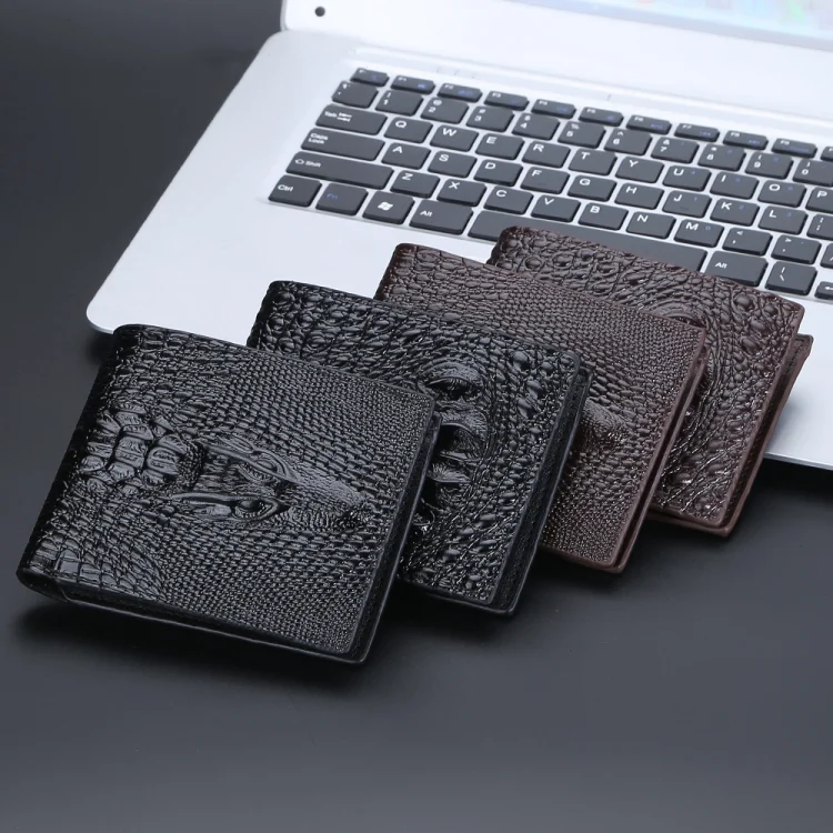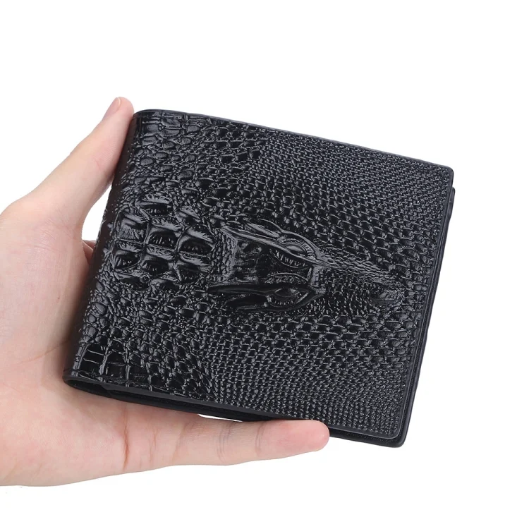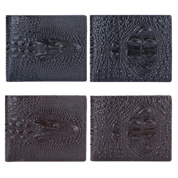 Baellerry Crocodile Print Men Short Wallet Vintage Multi-card Slot Coin Purse