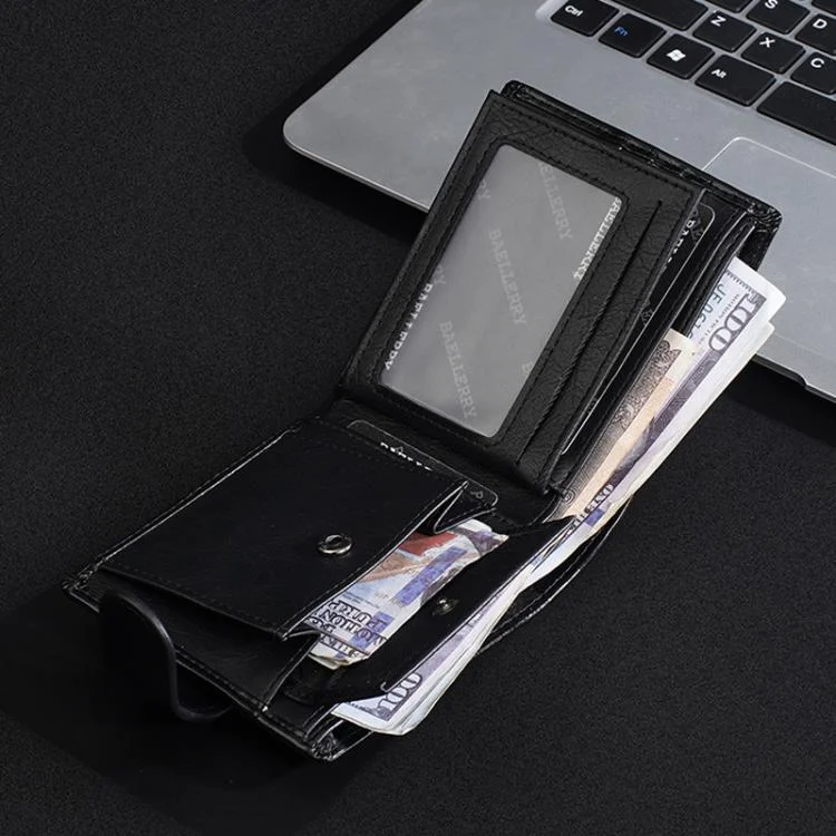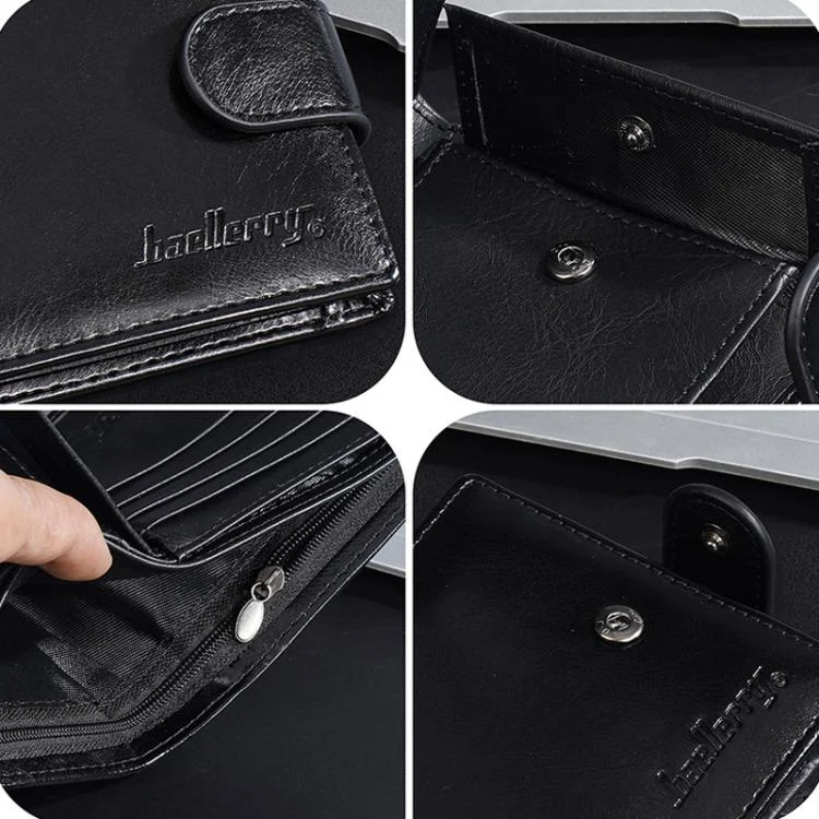 Baellerry D3065 Men Three Fold Short Style Zipper Wallet Snap Closure Multi Card Slot Billfold