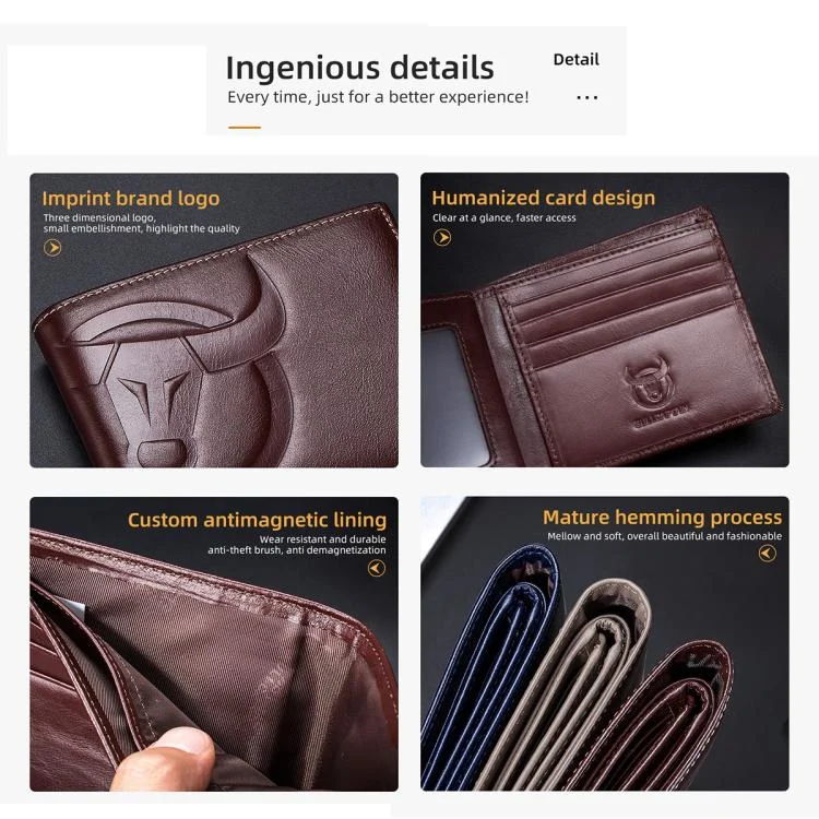 BULL CAPTAIN 0203 RFID Anti-theft Top-layer Cowhide Multiple Card Slots Wallet