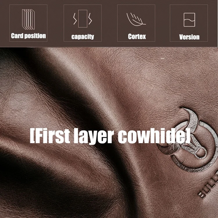 BULL CAPTAIN 028 Long Buckle Retro Cowhide Multi-Function Wallet (Black)